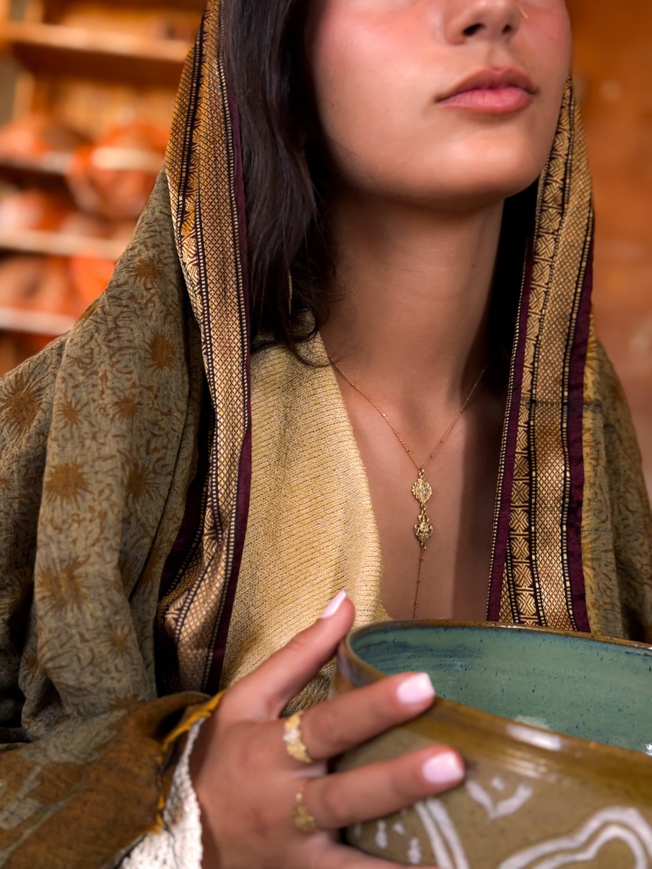 Jewelry born of sacred geometry, Eastern artistry, and the quiet elegance of nature. Hand-crafted in 14k / 18k gold and gemstones, each piece carries symbols of protection, harmony, and awakening. A timeless expression of femininity, mysticism, and refined beauty.